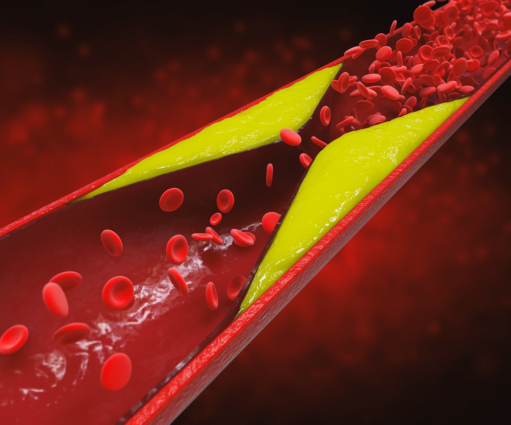 - 狭いところで血液の流れが乱れ、「血栓(けっせん)」という血のかたまりができやすくなる