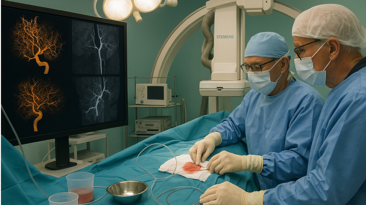 高度な技術が必要ですが、経験豊富な医師が行えば安全性は高く、国内データでは約98%の高い治療成功率が報告されています。脳梗塞や出血など、まれに合併症がありますが、最新の医療ではリスクは年々低下しています。