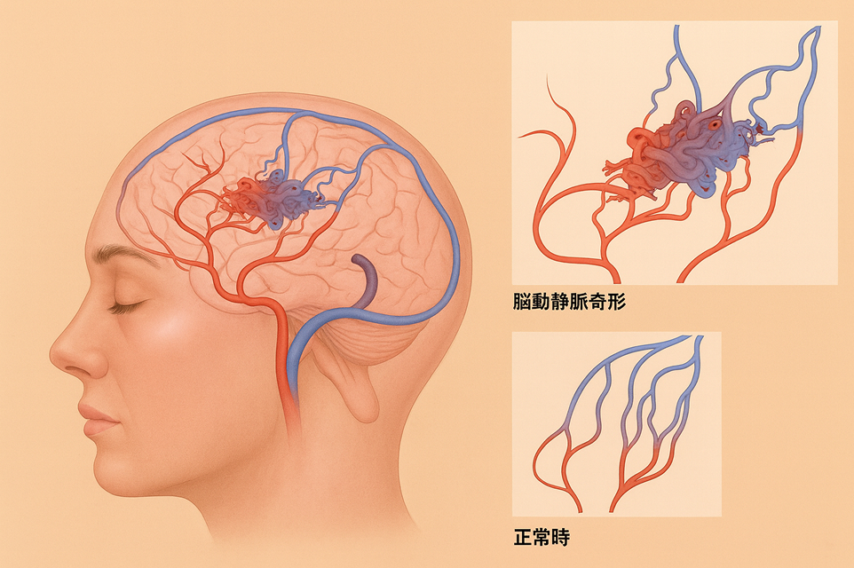 この異常なつながりにより、血管に強い圧力がかかり、ナイダスが破裂すると脳出血やくも膜下出血を引き起こして命に関わることがあり、救命できても半身不随や言語障害など著しい障害が残ることがあります。また、破裂しなくてもてんかん発作などの症状が現れる場合もあります。